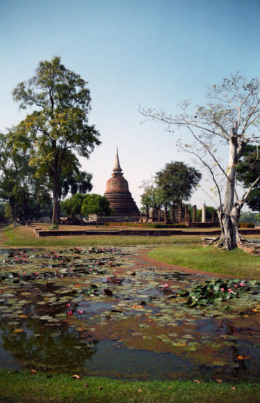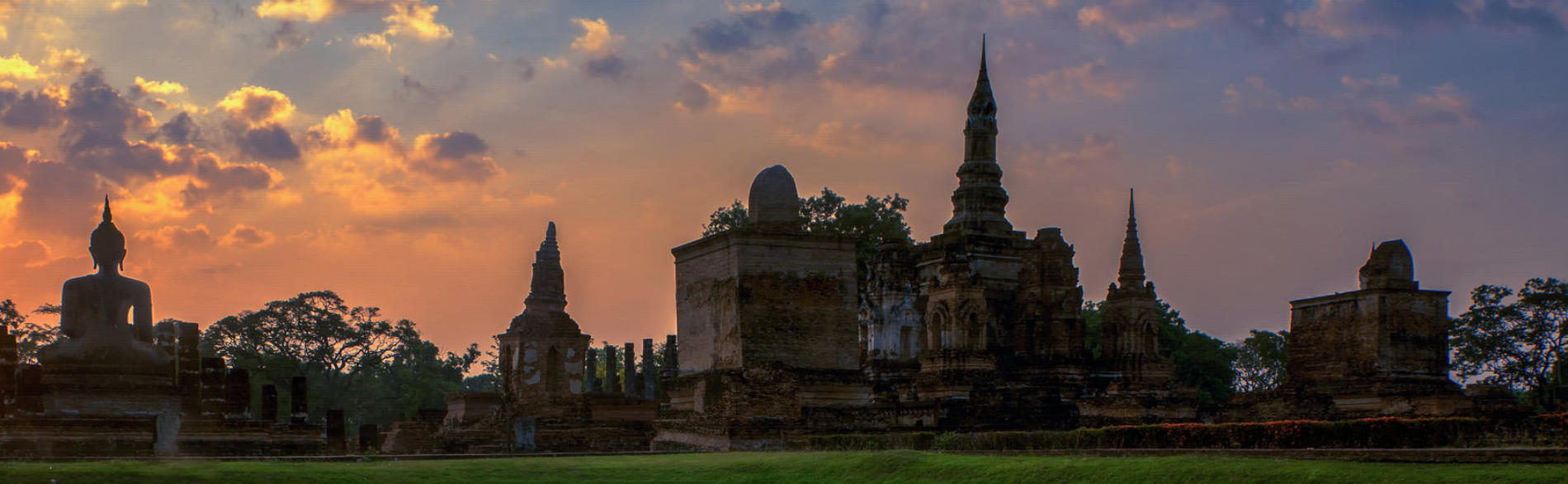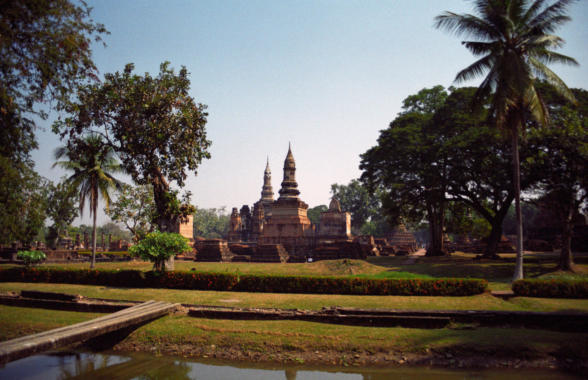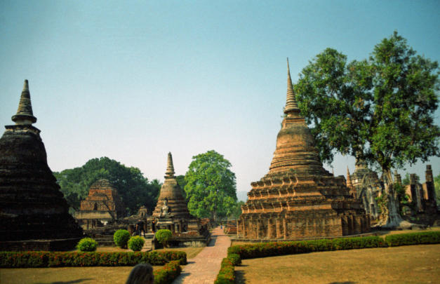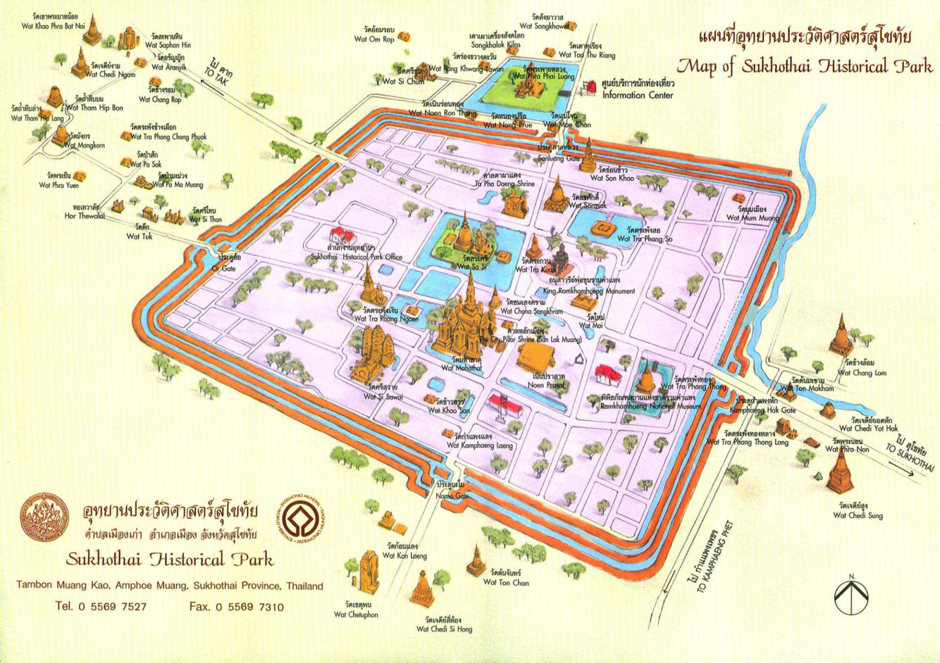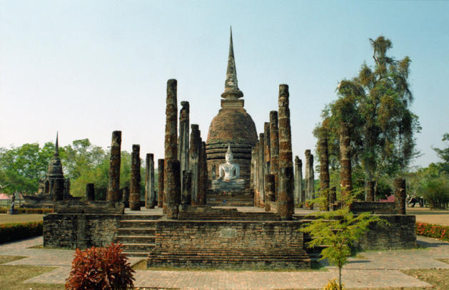 Geschichtspark Sukhothaiอุทยานประวัติศาสตร์ สุโขทัยDie Überreste eines Königspalastes, eine verfallene Stadtmauer und über 200 Tempel-Ruinen aus dem 13. und 14. Jahrhundert zeugen im Norden Thailands vom alten Königreich Sukhothai. 1988 wurde hier ein Geschichtspark eröffnet, der seit 1991 zum UNESCO-Weltkulturerbe zählt.Der Tempel Mahathat bildet das Zentrum der Anlage. Hier wird jährlich das buddhistische Lichter fest Loi Kratong gefeiert. Im Tempel Si Chum wurden Steinplatten mit Gravur entdeckt. Sie gelten als die ältesten erhaltenen Beispiele thailändischer Zeichenkunst Innerhalb der Mauern der historischen Stadt befindet sich das Ramkhamhaeng Nationalmuseum, wo wertvolle Funkstücke ausgestellt werden.
