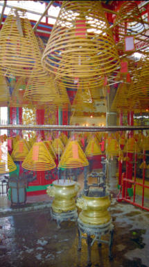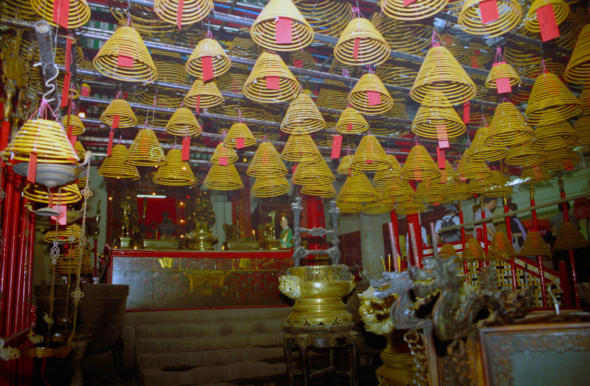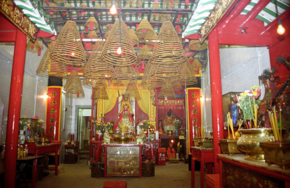 Atmosphäre im Inneren. Er ist der älteste Tempel in Hong Kong,