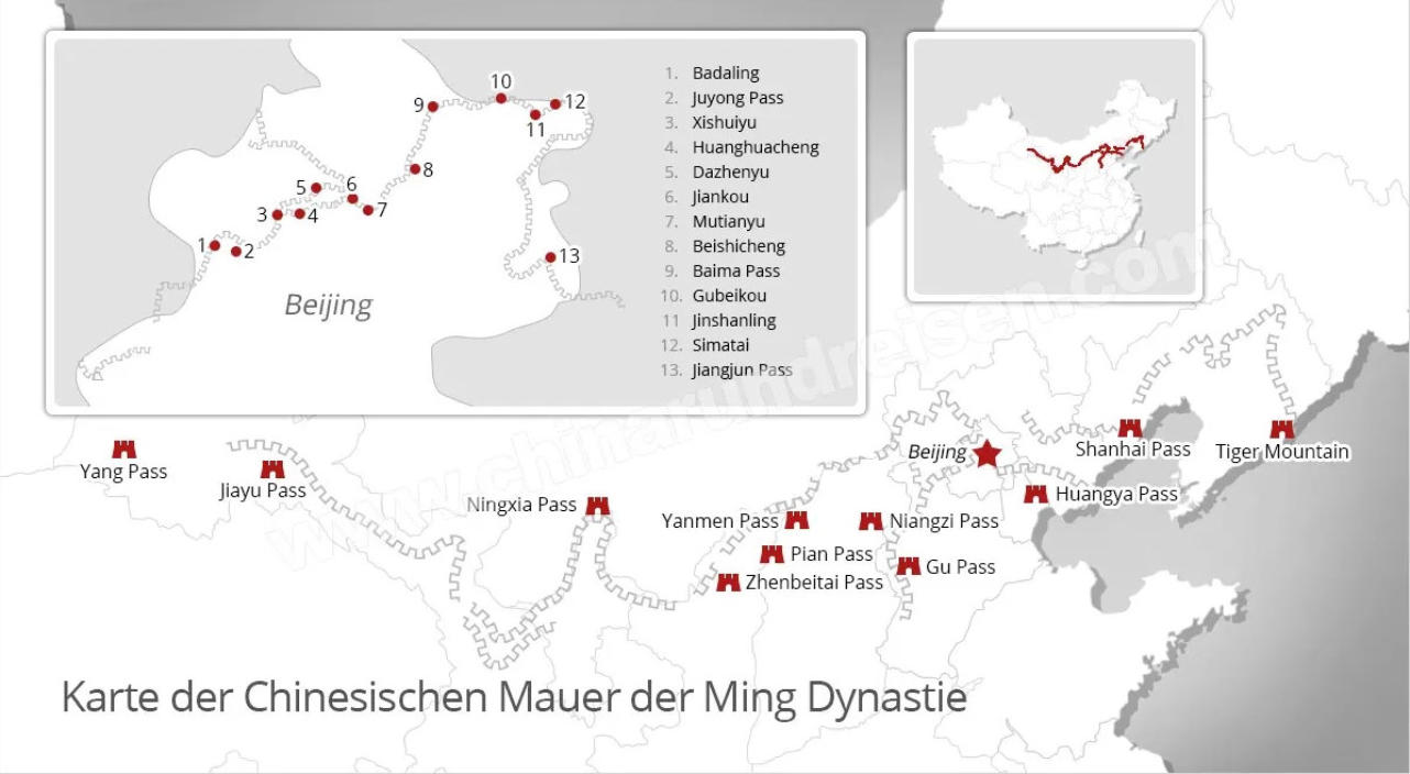 oder 1½ Autostunden nordwestlich vom Stadtzentrum. Die Große Mauer am