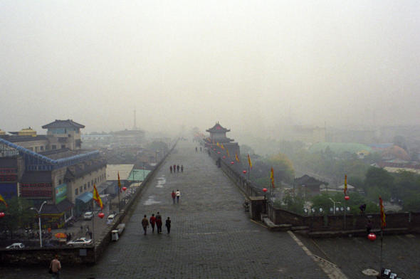 Die Stadtmauer von Xi`an wurde in 14. Jahrhundert während der Ming