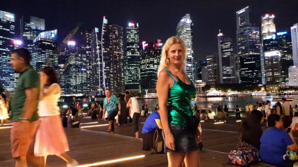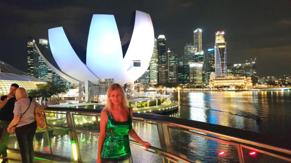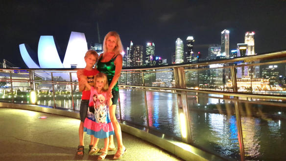 Petra, Dominik und Evelin vor der Skyline von Marina Bay