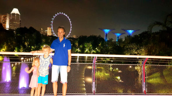 Oliver, Dominik und Evelin vor der Skyline von Marina Bay