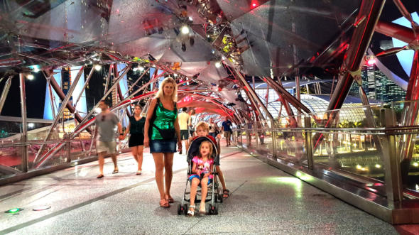 Der Singapore Flyer, die Helix-Brücke, das Marina Bay Sands Hotel,