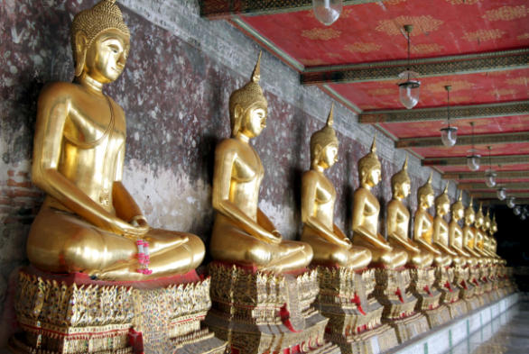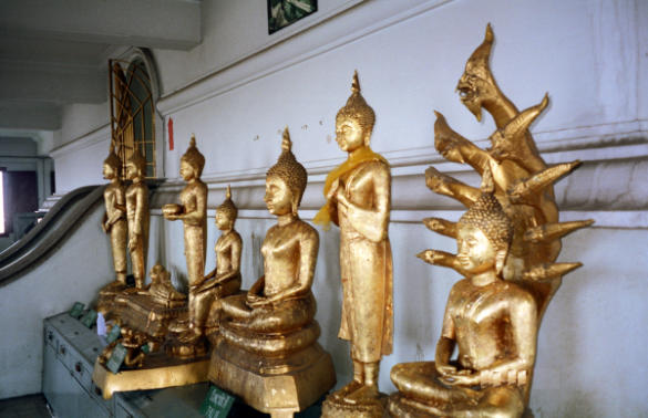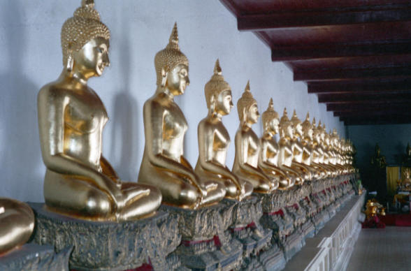 Goldplättchen überzogene Buddha-Statuen sehenswert.