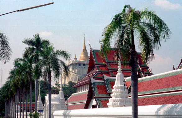 Wat Saket Ratcha Wora Maha Wihan, im Hintergrund der Golden Mount