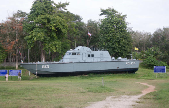 sowie das Polizeiboot 813, das von den Flutwellen etwa zwei Kilometer