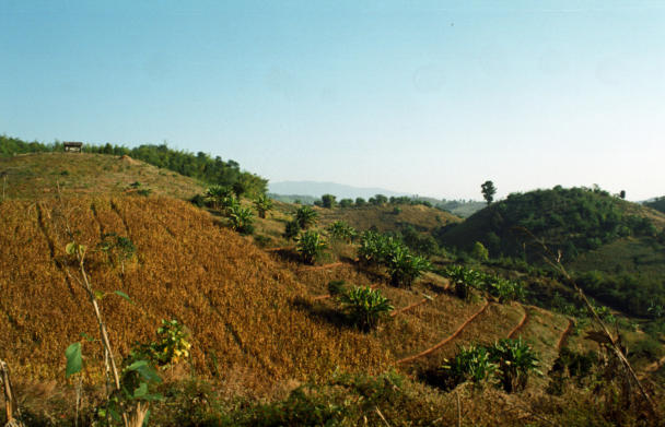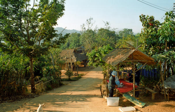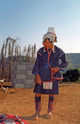 Akha Dorf in der nähe von Mae Salongแม่สลองDas Bergvolk Akha ist eines der zahlreichen Bergvölker Südostasiens und sind in Thailand als eines der sieben großen Bergvölker anerkannt.Ursprünglich kamen Sie aus dem Grenzgebiet von Birma und Yunnan nach Südostasien, wo sie heute in Nord Thailand, Laos und Vietnam leben. Die Sprache der Akha gehört zur Sino Tibetischen Sprachfamilie und kennt nur die mündliche Überlieferung. Man schätzt die Zahl der Akha auf mehr als 400.000. Sie bilden damit eine relativ große Minderheit in den Ländern, in denen sie siedeln.Die Akha kamen möglicherweise ursprünglich aus der Mongolei, wo sie vor 1500 Jahren gesiedelt haben sollen. Sie zogen später sicher nach Yunnan in Südchina und beherrschten vom 8. Jahrhundert bis zum 13. Jahrhundert das Königreich Nanzhao. Die nach Yunnan vordringenden Tai Völker, Mongolen und Han integrierten die Akha in ihre Bevölkerung oder vertrieben sie auf die höher liegenden Gebiete ihres eigenen Lebensraumes.