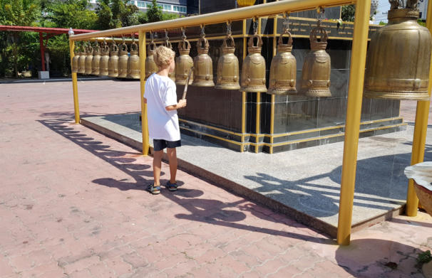 Dominik am Glockenspiel von Wat Nong Ao