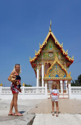 Petra, Dominik und Evelin vor den Eingang von Wat Bun Samphan