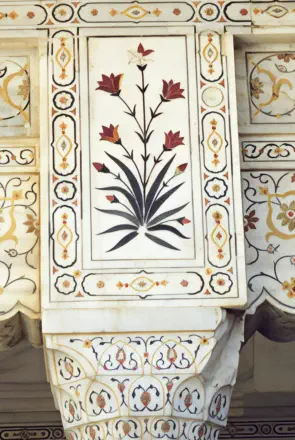 Besonders unter Kaiser Shah Jahan, dem Erbauer des Taj Mahal, wurden viele Bereiche des Forts mit weißem Marmor und kunstvollen Verzierungen erweitert.