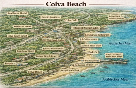 Colva war ursprünglich ein Fischerdorf, entwickelte sich aber im Laufe der Zeit zu einem beliebten Urlaubsort mit Unterkünften, Restaurants,