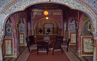 Samode vereint die typischen Merkmale der Rajput-Architektur mit Einflüssen der Mogulbaukunst und beeindruckt durch kunstvolle Fresken,