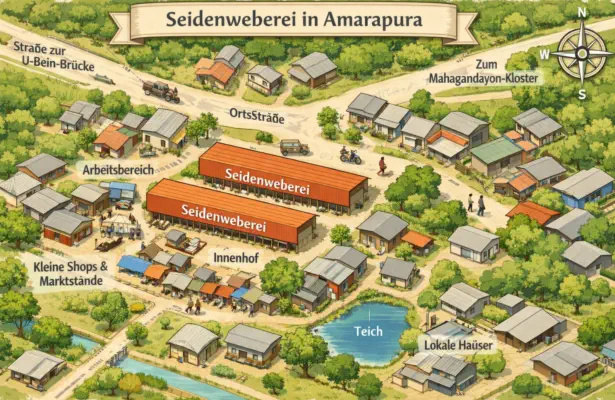 Die Seidenweberei in Amarapura gilt als wichtiges kulturelles Erbe Myanmars und zeigt die Kunstfertigkeit der burmesischen Handwerker auf besondere Weise.