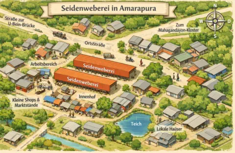 Die Seidenweberei in Amarapura ist eine traditionsreiche Handwerkskunst, die für ihre feinen und farbenfrohen Stoffe bekannt ist.