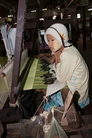 Viele der gewebten Stoffe werden für traditionelle Kleidung, wie Longyi, sowie für dekorative Zwecke genutzt.