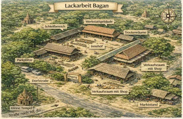 Die Lackarbeit in Bagan ist eine traditionelle Handwerkskunst mit langer Geschichte.