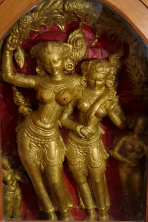 Typisch sind filigrane Muster, oft in Rot, Schwarz und Gold, die mit Blattgold, Perlmutt oder farbigen Lacken verziert werden.