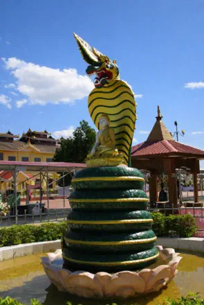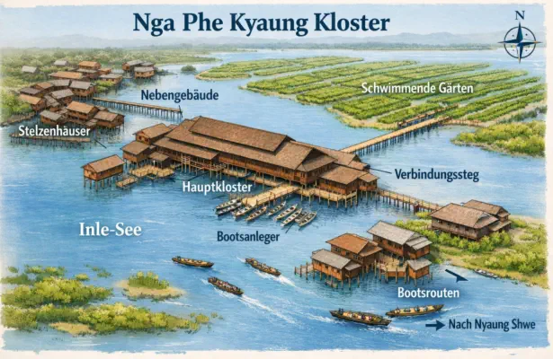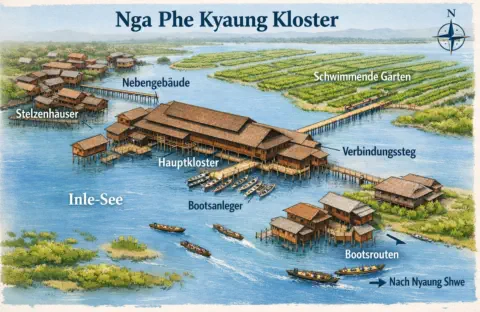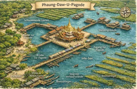 Er liegt nahe dem Dorf In-Dein am Inle-See und beeindruckt durch seine historische und ruhige Atmosphäre.