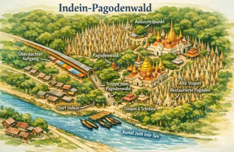 Der In-Dein-Pagodenwald gilt als ein faszinierendes Ziel, das Geschichte, Kultur und die mystische Schönheit Myanmars vereint.