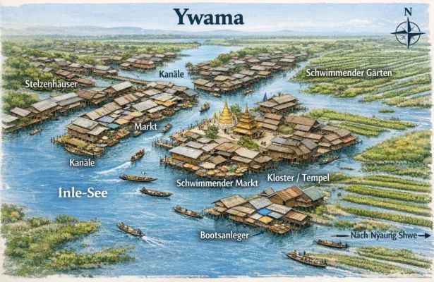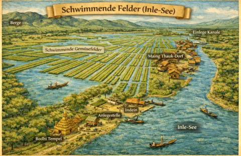 Die schwimmenden Felder am Inle-See sind eine einzigartige Form der Landwirtschaft, die auf Wasserflächen betrieben wird.