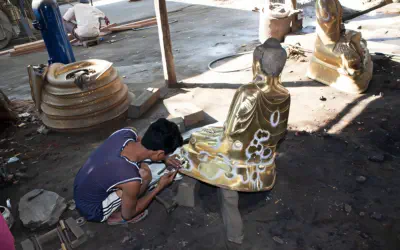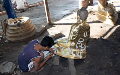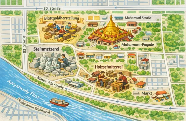 Die Handwerksbetriebe in Mandalay sind für ihre traditionellen Techniken und kunstvollen Arbeiten weithin bekannt.
