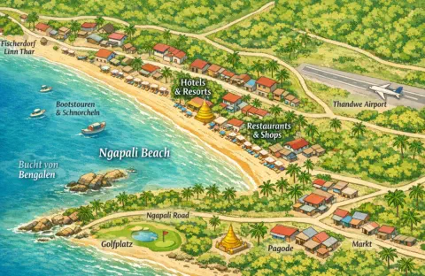 Ngapali Beach gilt als perfektes Reiseziel für Erholung, Natur und entspannte Strandferien in Myanmar.